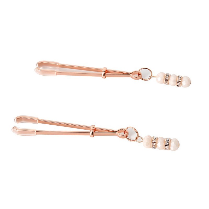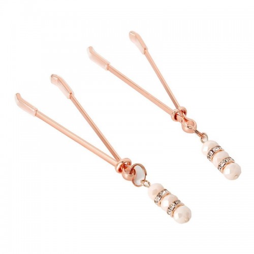 Estas hermosas pinzas para pezones rose gold ofrecen una estimulación controlada con un diseño delicado y femenino. Su sistema de ajuste permite regular la presión con suavidad, mientras las joyas de cuarzo rosa (fantasía) y los circones aportan un peso sutil que acompaña cada movimiento, despertando la sensibilidad sin excesos. Un accesorio elegante y bien equilibrado, ideal para juego en pareja o exploración personal con estilo.