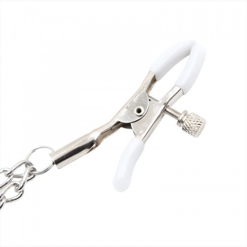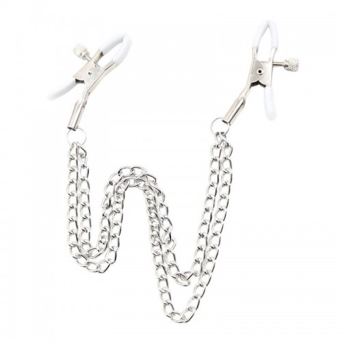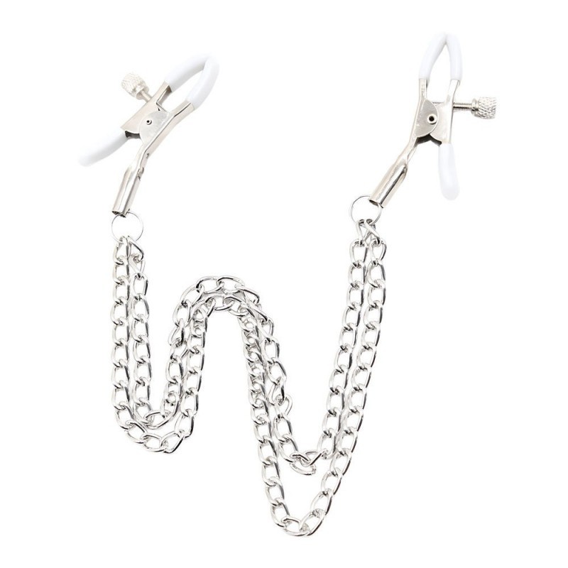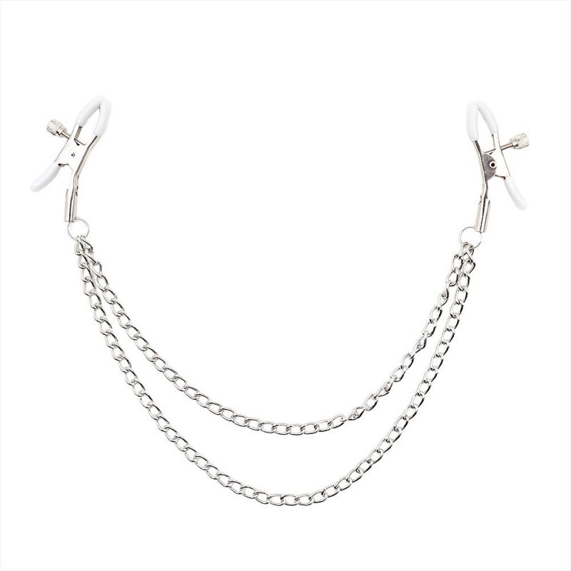 Estas pinzas para pezones de SENS con doble cadena están diseñadas para generar impacto visual inmediato desde la tensión y el balanceo. Las pinzas se ajustan con precisión al cuerpo, mientras las cadenas metálicas caen y se desplazan con cada gesto, creando una presencia constante que dirige la mirada y marca el ritmo del juego. El contraste entre el metal brillante y el acabado blanco refuerza una estética limpia pero provocadora, pensada para juegos de rol en pareja. Un accesorio que se percibe tanto en la piel como en la escena.
