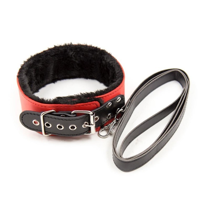 Incluye: esposas para muñecas, esposas para tobillos, collar con correa, látigo, mordaza respirable, cuerda de algodón (5 mt) y antifaz.