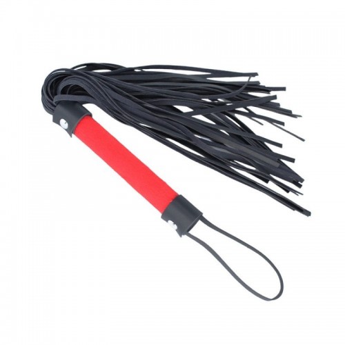 - Látigo con mango de terciopelo y tiras de cuero sintético con correa para mejor agarre